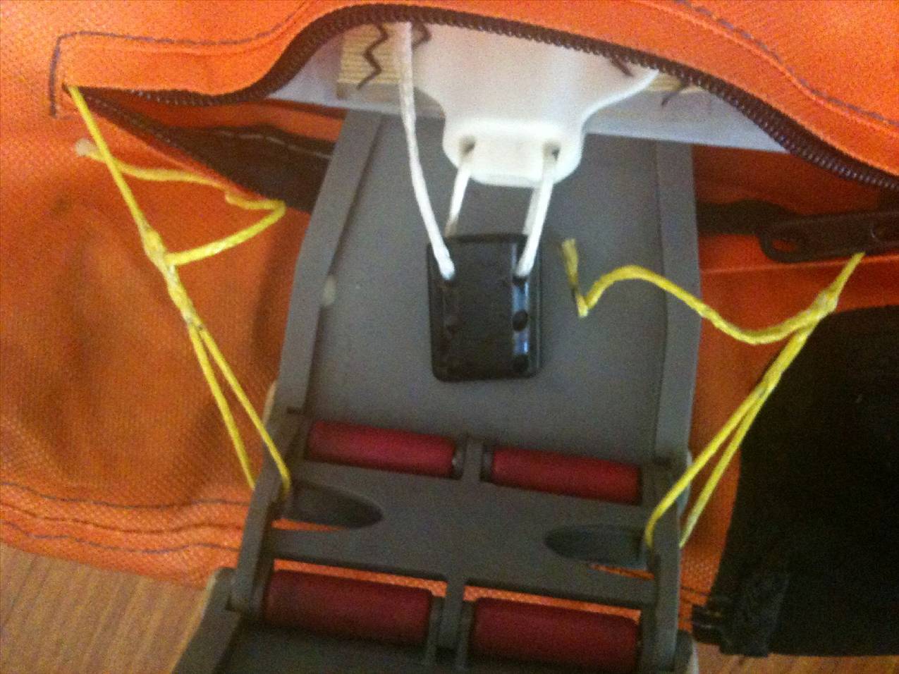 I think that the length of yellow string affects how the cam sits on the mast. Make it shorter if the cam has difficulty rotating, make it longer if the cam doesn't sit up tight against the mast.