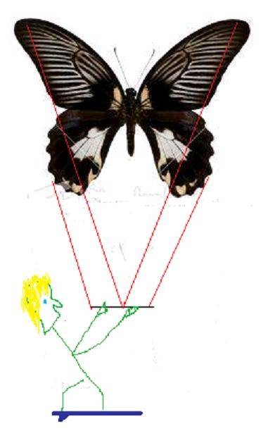 But the shape of the front wings isn't similar to our sails when you see it the way the air does, when the butterfly is flying forwards. The wind first "sees" those front wings at the skinny part (top of the page) and then the air passes down to the section of widest chord further down the page.