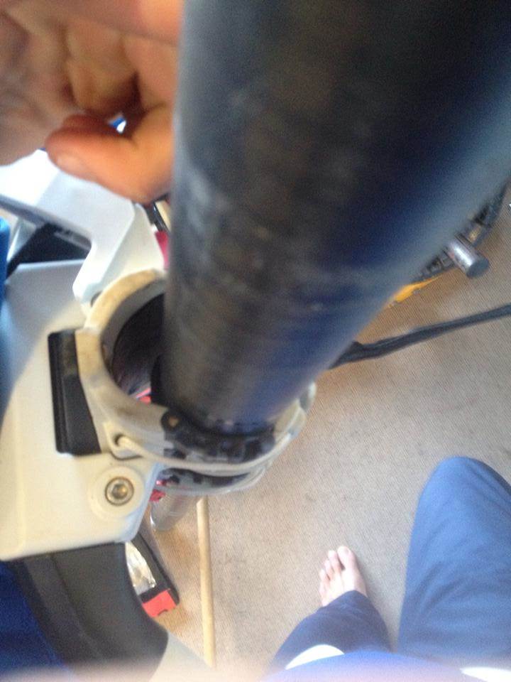 The section of mast in earlier pictures is where boom goes. (45 mm outside diameter) I cut broken section off and tidied edges for examing /showing clamp...