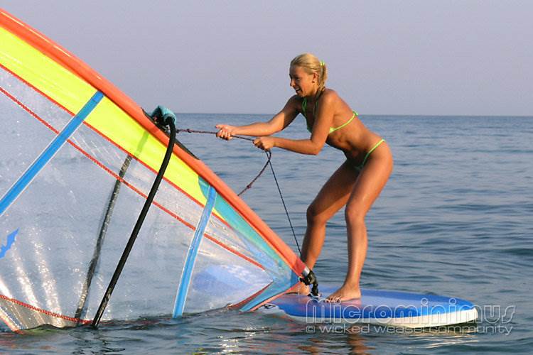 Are you sure she is sitting on windsurfing board ? What sort of base and extension I wonder.....