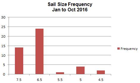 I was surprised how much use my 5.0 got and a bit diappointed how much my 5.7 got as its my light wind sail. I'm not sure if I need to make changes to sizes or are my results a reflection of the wind strengths.