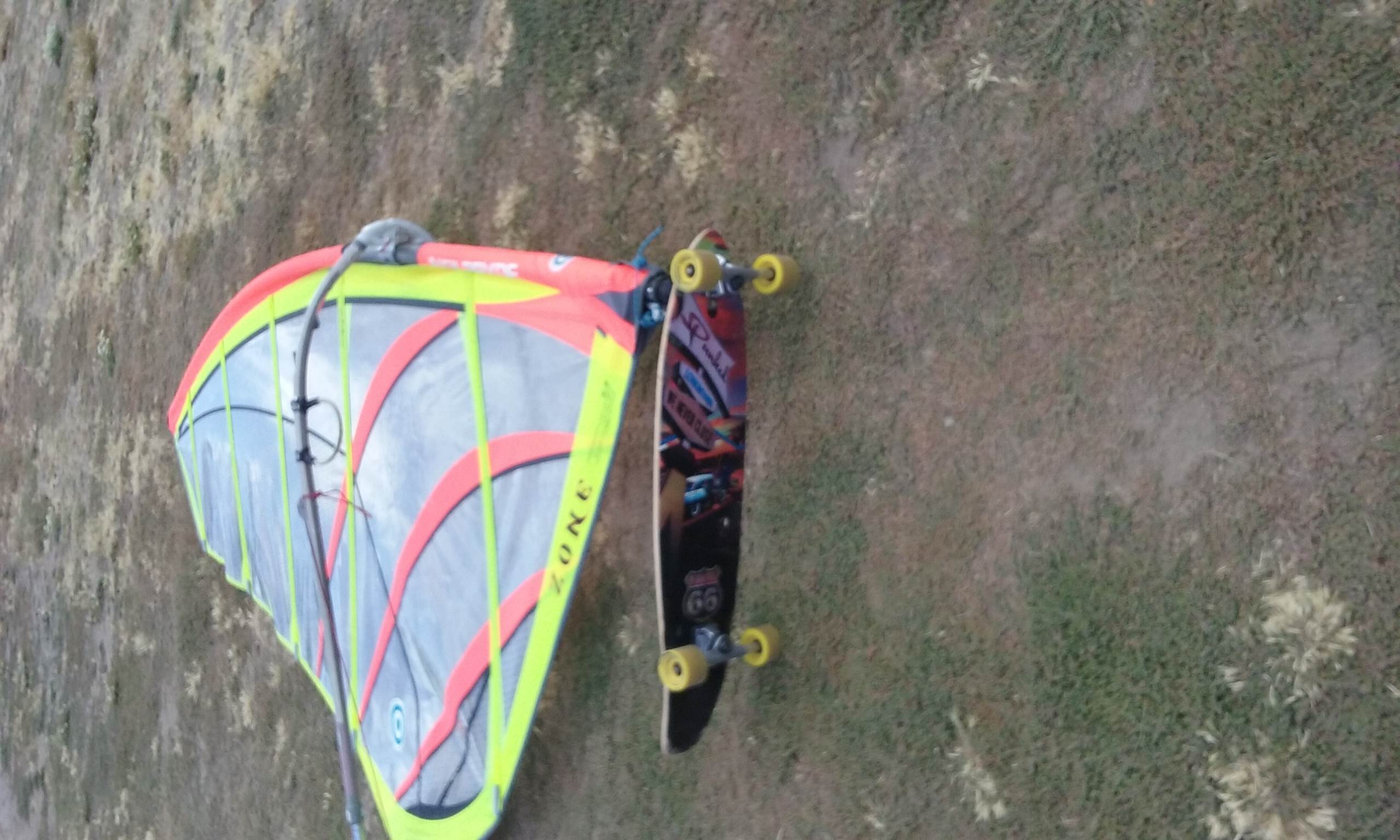 I have 3 sets of gear for 3 different types of windsurf rigs. My nicest set goes on my sailboard, when that gear starts wearing, it gets passed on to my windski, when that gear is on its last leg, it gets passed on to my windskate. The gear on my windskate is worn out gear,taped up sails, scratched up boom, old mast extension with older mast. The gear just gets handed down the chain as you can see. I do wear a harness when I windskate, and it's very effective, especially when going up hill. I use my worn out harness for both windskating and windskiing.