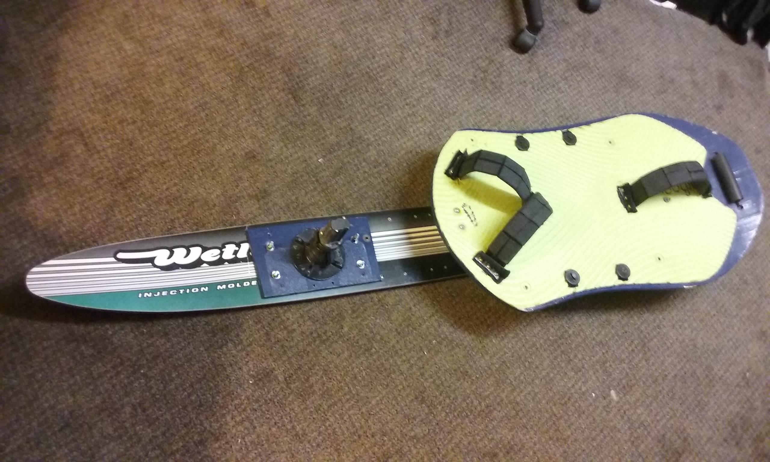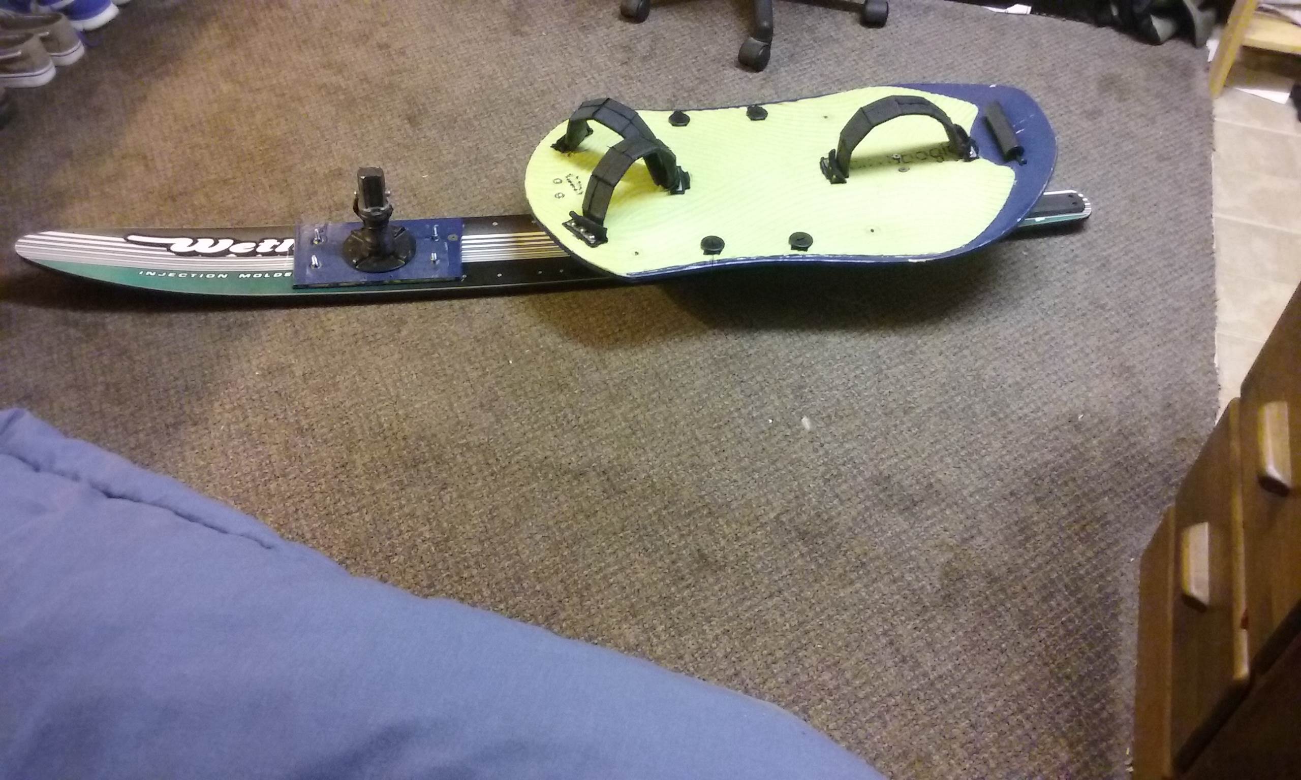 I used a waterski for my setup. I give it a pretty good coat of wax before I start the season. The wax stays on for several sessions. When the conditions are perfect, I don't even need to wax the bottom of my windski. I built the deck which sits 5 inches on top of the ski with stainless steel risers supporting the deck. Very balanced ski. I only use a 4.7 and 5.3 sail. Any larger sail doesn't perform very well. Correction, I have used a 5.8, but that is max size for my ski. I can bump n jump better with the lighter sails.