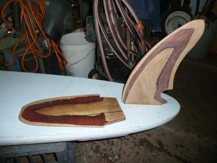 it had a vaccum bagged timber veneer on the outside of a glass moulded fin. it was solid as. it was also fairly thick so it's low wind outcomes were truly impressive but it had no top end.