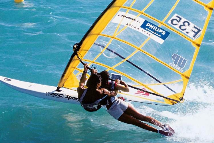 the little fellow got a full neck lifejacket on.we only went out a short distance .tacking was interesting .the idea was not to fall in & we didn't light winds made it easier there was a quick release on the front of me if anything did go wrong just a bit of fun.l wouldn't recommend doing this to anyone