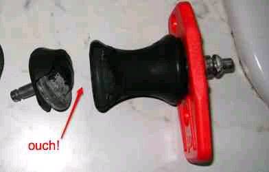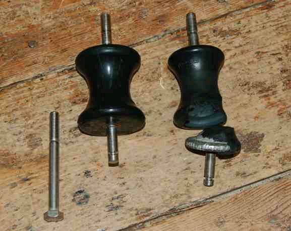 If the rubber is moulded to a female nut, you might be able to unscrew the male from the female, using something like WD 40 and it will probably take considerable time and effort to break the parts free. As SurfConnect says, the latest style uses rubber moulded around a female nut, into which a male shaft is Loctited and screwed.