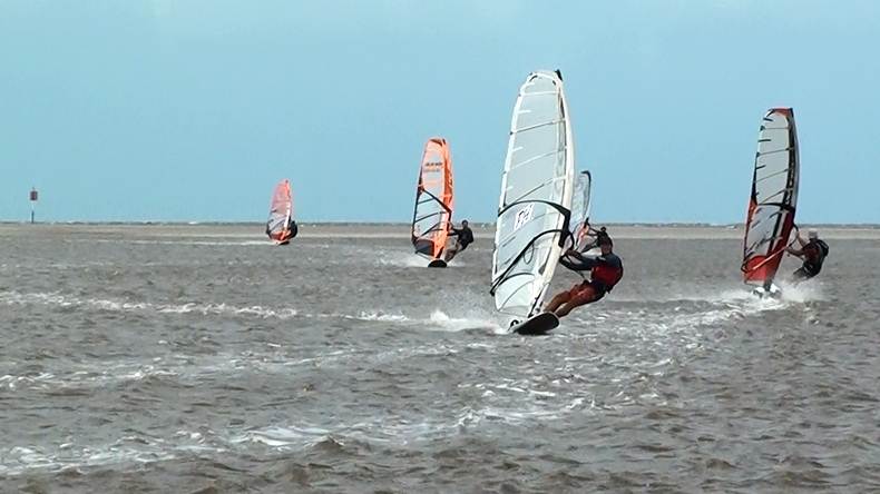 Wind has really kicked in now. Solid 25-30 out on the run. Waiting for the tide to drop. Channel 7 joining us today at the event and out on the speed bank. Course set to open around 1pm