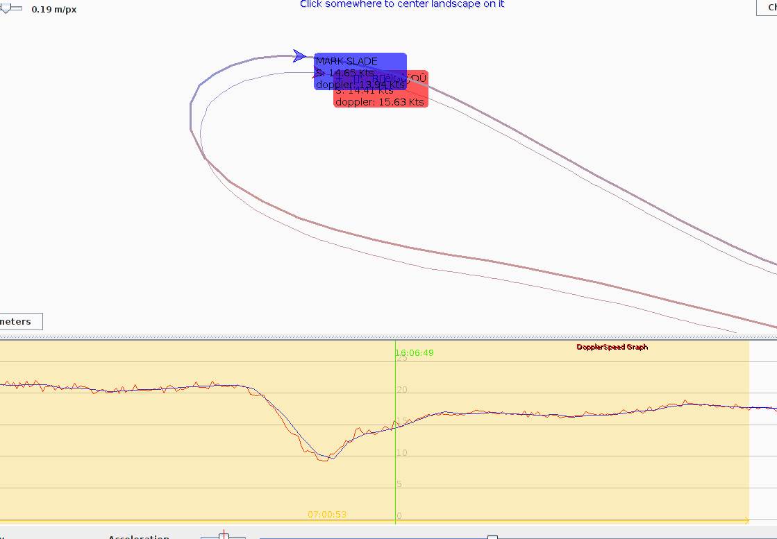 You can see a kink in this track at min speed point, is this Mark flipping the sail? Could be a cause of slight error with unit on the wrist?
