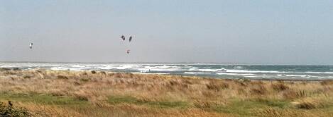 At the river mouth the dunes are lower so it's less gusty, with some nice flat water but short runs.