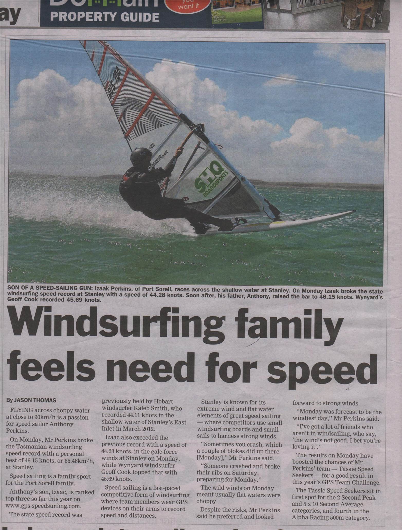Thanks everyone! It surely is a great thing to be part of the Tassie team, the young(under 21 apparently), the old(Perks) and those of us in the middle(not Dave) thrive off the energy and passion of each other. 2014 looks to be another great year for the team with a number of PB's today and the Tassie 2second record blown to bits. Izaak, Cookie and Perks all smashed the previous record with Perks adding about 2knots to the old score and coming out on top with a little bit of Perks magic, this makes him the most marked man in Tassie and will no doubt be 'taken out' in a dark alley one quiet night before the next big blow![]()