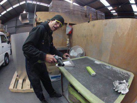 We have a great spot which is only sailable when the lake level is high enough. Soft sand bottom and shallow. Touching the bottom is common but no problem besides wearing your carbon fin down. G 10 is more hard wearing but I decided to make a gobstopped fin from aluminium. Gobstopped was a Willy wonker lolly that lasted forever. Used the eyeometer to shape and simple scribe lines.