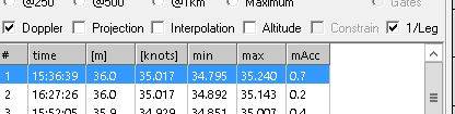 Well I set out this morning to try and figure where that 35kts came from. I know GPSResults ignores bad data, so I opened the file in GPSARPro. This has a handy feature of doing a sort in the speed column. Which of course I did, and it shows max speed over all those sessions is only 31.4something knots.