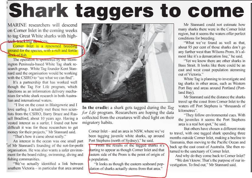 I met a guy a few years ago who's sport was Shark fishing and after much exploring settled on a spot just inside Port Phillip heads where he claims he has caught most all types of sharks. in an effort to find other spots they talked to a pilot of the shark spotting planes. when asked where are all the biggest sharks?