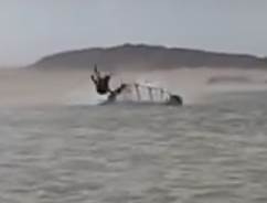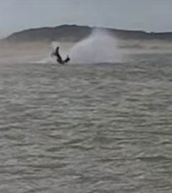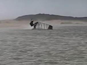 4.Lucky for him he was somehow accidentally released form harness lines free and keep going/ flying skimming the water with minimal deceleration.
