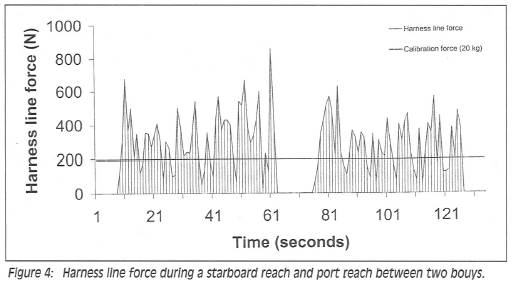 (For details see Walls, J.T, Gale, T.J. (2001). ‘A technique for the assessment of sailboard harness line force.’ Journal of Science in Sport in Medicine, 4(3), p348-356.)
