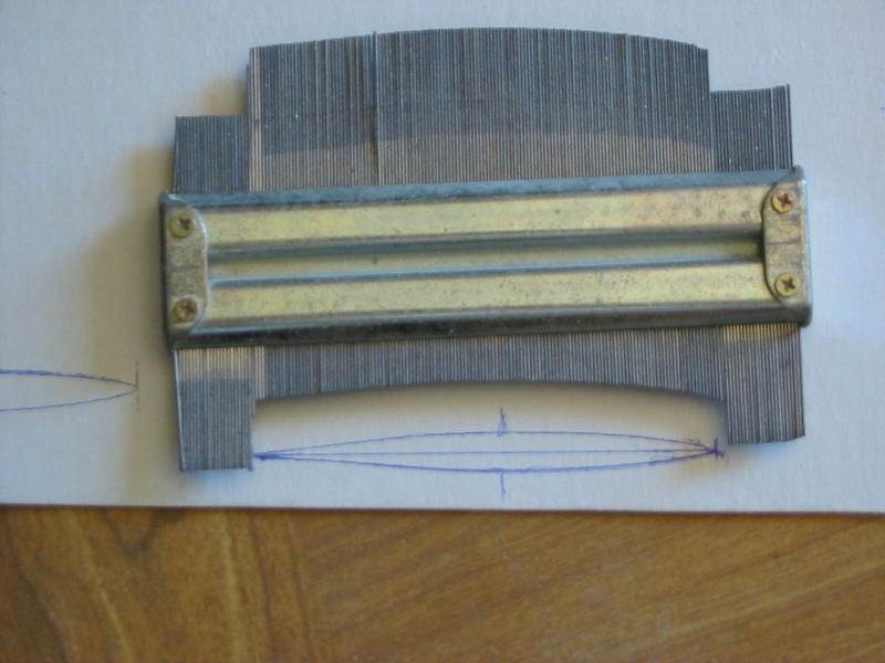 With the profile gauge you could create an image of the good section then scale that image down to suit the sizes of the new foil section. Or better still if the old tip is still intact, record the shape at several points, so you can recreate it.