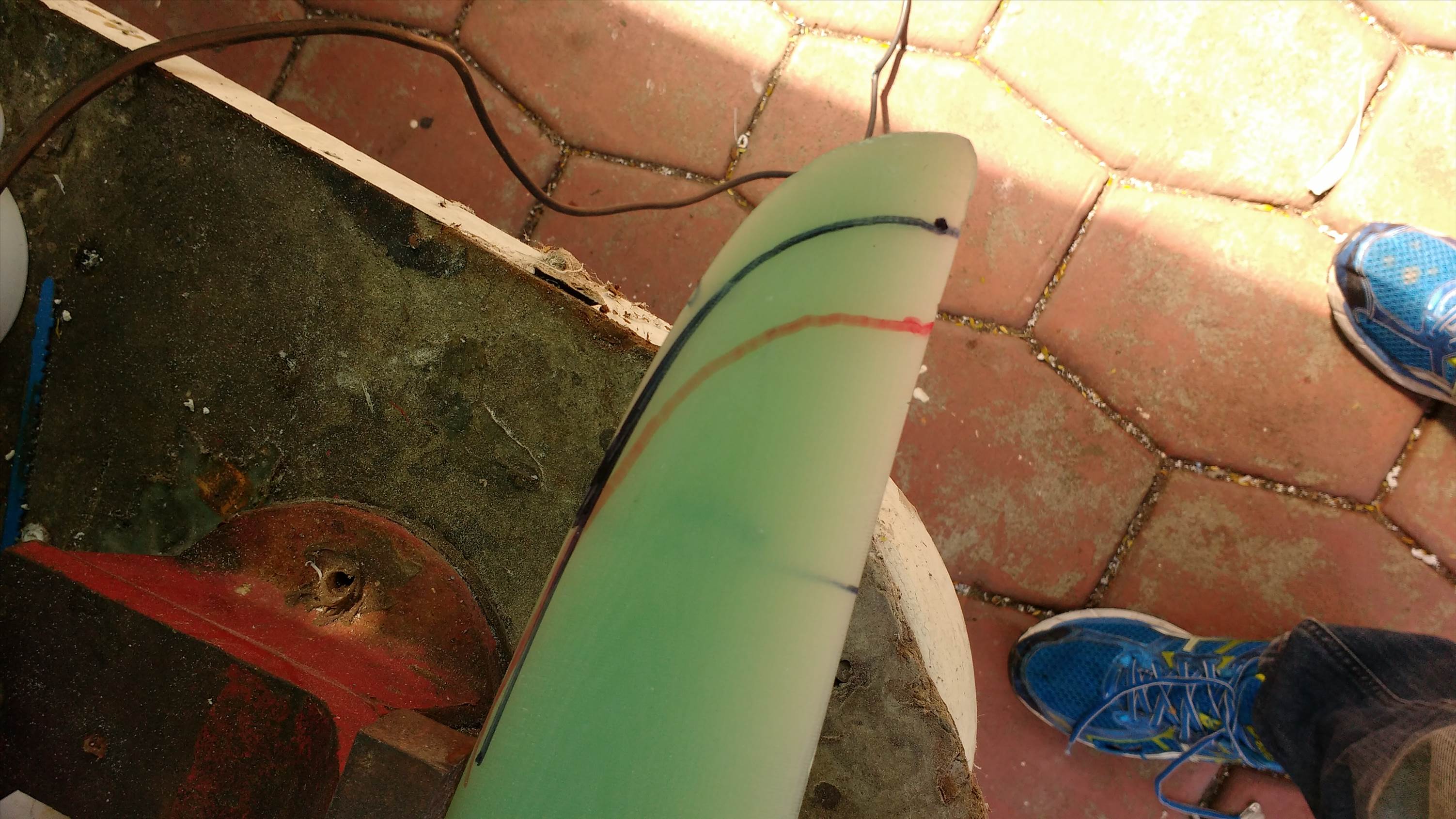 Constantly check your filing is following the fins original foil and basic shape. Once you have got the desired shape use 800 sandpaper to fair it all and get rid of any nicks. The filing and sanding will account for the last 1/2cm.