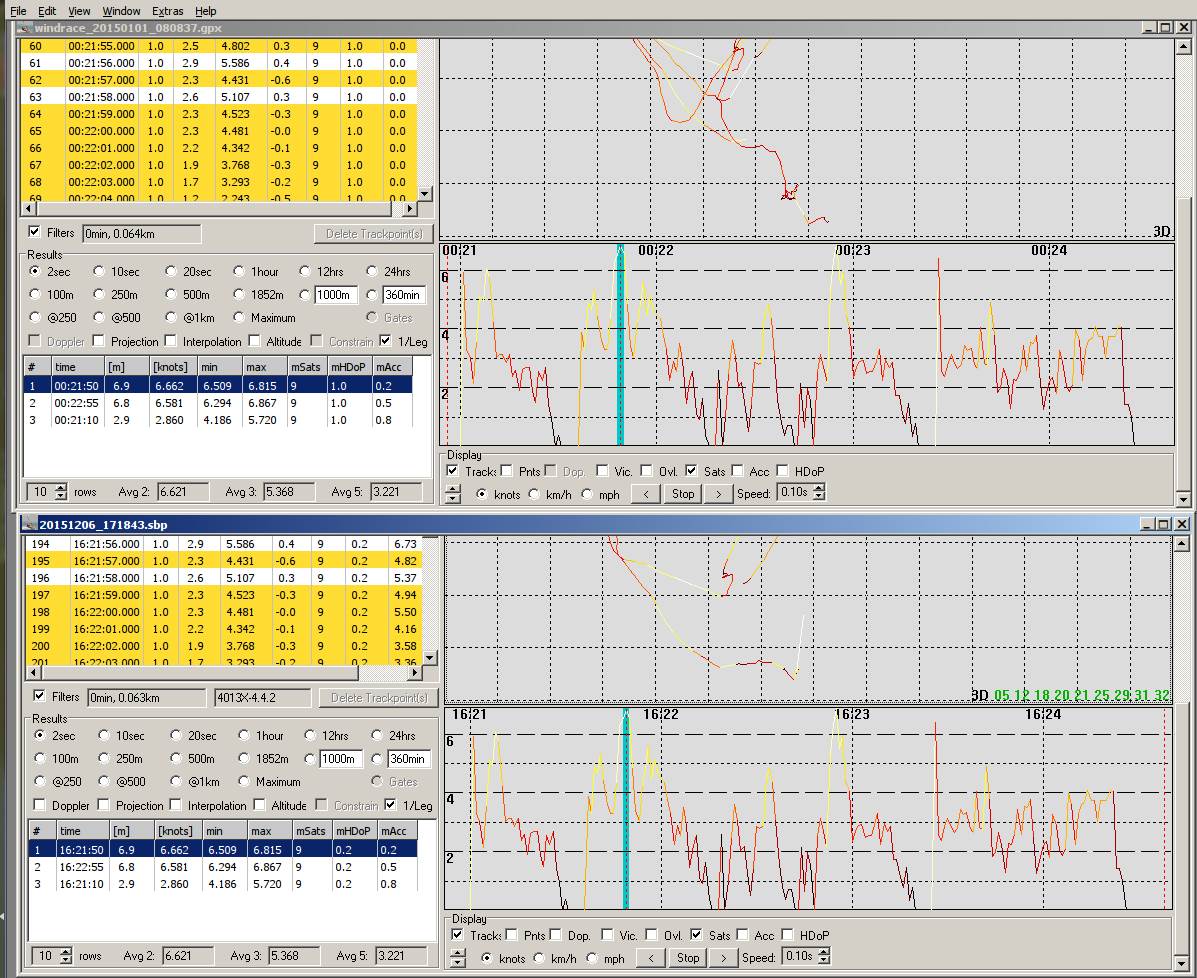 The sections of the best speed (2s,10s and etc) are shown as the separate layers on the GPS trace (can be turned off/on). Are those best sections have similar positions like the best sections in GPSLogit?