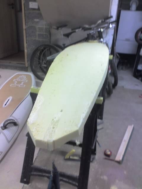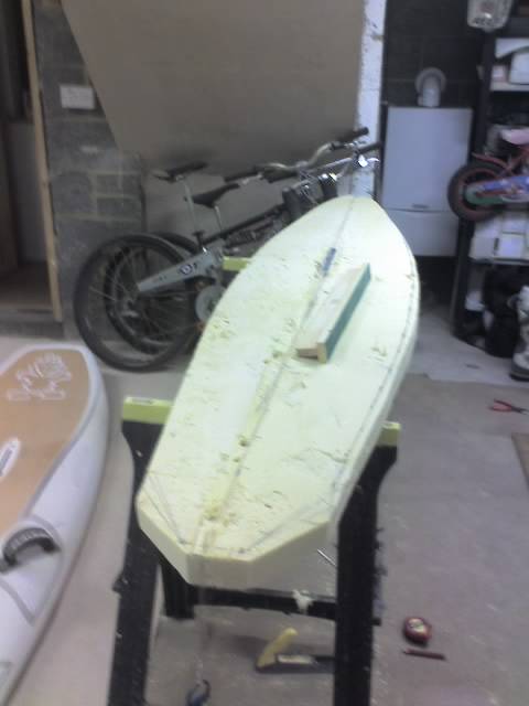 here where i got to today doesn't look great but slowly figuring it out,im thinking there not a great deal of volume in the tail of the board as it was quite skinny originally so thinking it may be worth sticking a bit more foam on the top or bottom to fatten it up a little.