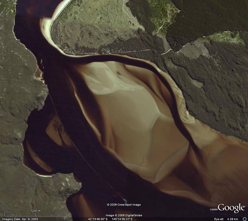 Yeah, this spot does look pretty good, but you'd really need a boat to get there if the wind was up. It's an inhospitable place when it's blowing a gale. I've been there in both calm and rough conditions and there is a lot of water movement in and out (mostly out due to freshwater flow) of the harbour and you've got Devil's Gate's right around the corner. The convicts built it as a breakwater, which is an amazing feat!! Could be a good spot for doing a NM. Despite the water movement, there's not a lot of tidal movement in Macquarie Harbour, with water levels more influenced by high and low pressure systems. During bad weather, the water level is usually quite high (low pressure). Here's a photo of a section of the breakwater when it's just underwater on a nice day.