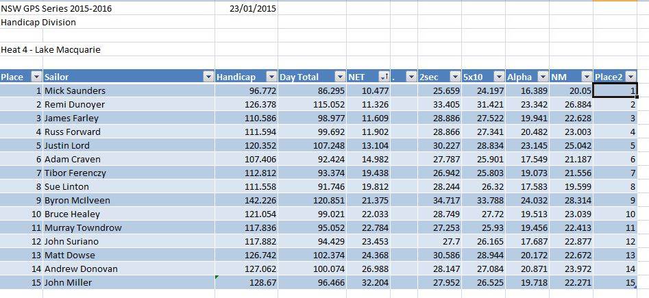 Handicap (sailed closest to personal bests in 2sec, 5x10, Alpha, NM)