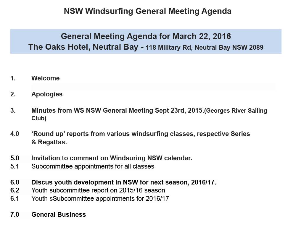 We will be tabling draft calendars for Racing, Wave, GPS, Social sailing & it should also provide an opportunity to further discuss the development of a Youth class in NSW for the 2016-17 season ahead.