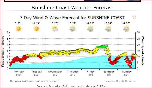 Guys check out south of the border. The north coast (Ballina) and mid north (Coffs to Newcastle) have brown arrows. Maybe Yamba could work for the speed run. Although they are also predicting up to 150mm of rain too so will probably be a ****e.
