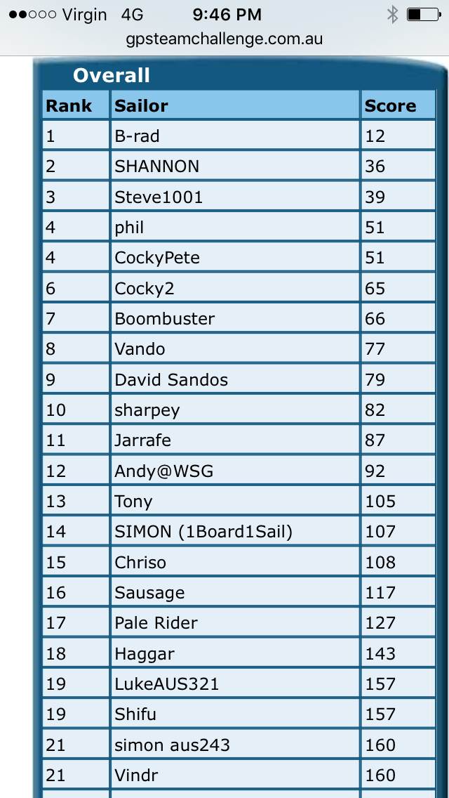 Three Redcliffe Freeriders in the top 20? I wonder where they snuck off to? ![]()