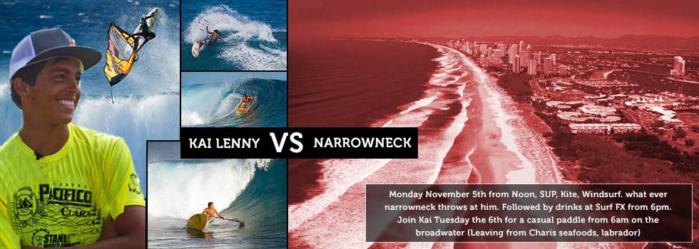 Kai will also be at Narrowneck (Main beach) on Monday the 5th from noon doing what he does. If its windy kitesurfing, really windy windsurfing, glassy SUPing.