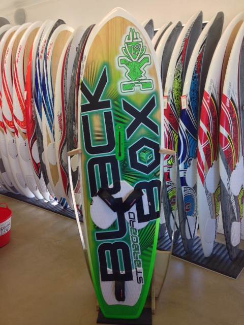 First Black Box in Australia, very interesting shape and great graphics. This board got lot's of attention after Danny Bruch used it very successfully in light wind conditions in the PWA. It's 215 x 62 with a super wide nose, tail and trailing fin set-up. Should be the ticket for low wind small waves. We're hoping to take it for a spin next few days !