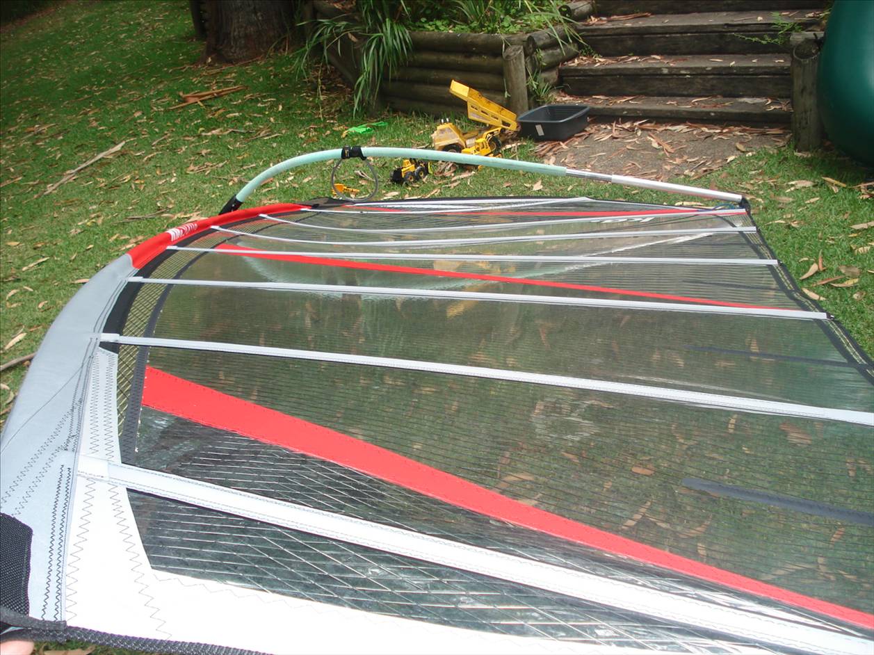On the other side of the coin is the rigging. Inparticular sleeving the mast to the top, this is alittle difficult. I need to crunch the sail up abit at the top and keep pulling the mast at the same time for the mast to sit at the fixed head, my concern is all the crunch and creasing of the sail that it won't rip the sail also the de rigging the mast top sometimes seperates from the bottom and you need to again push and crease the sail abit to remove the top part of the sail. Being a new fresh sail it will take A few more times rigging and derigging to get easier.