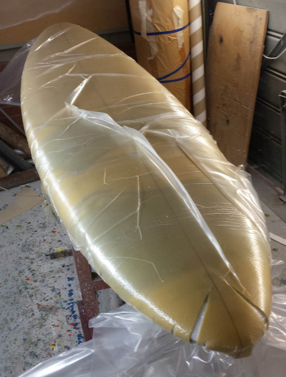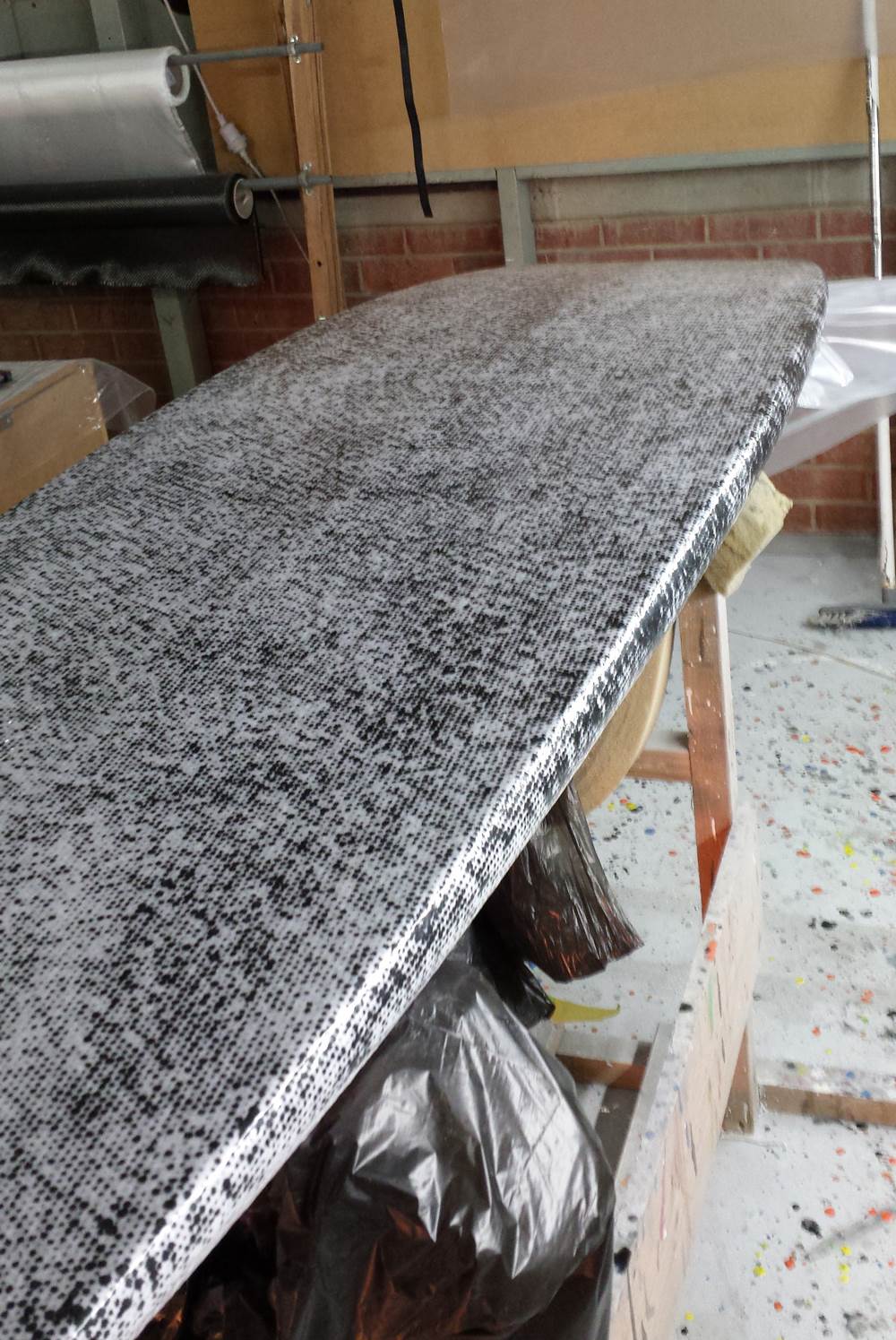 Finishing off Martin's wave board before we move next week. Vacuum bagging the Innegra and s-glass bottom on.