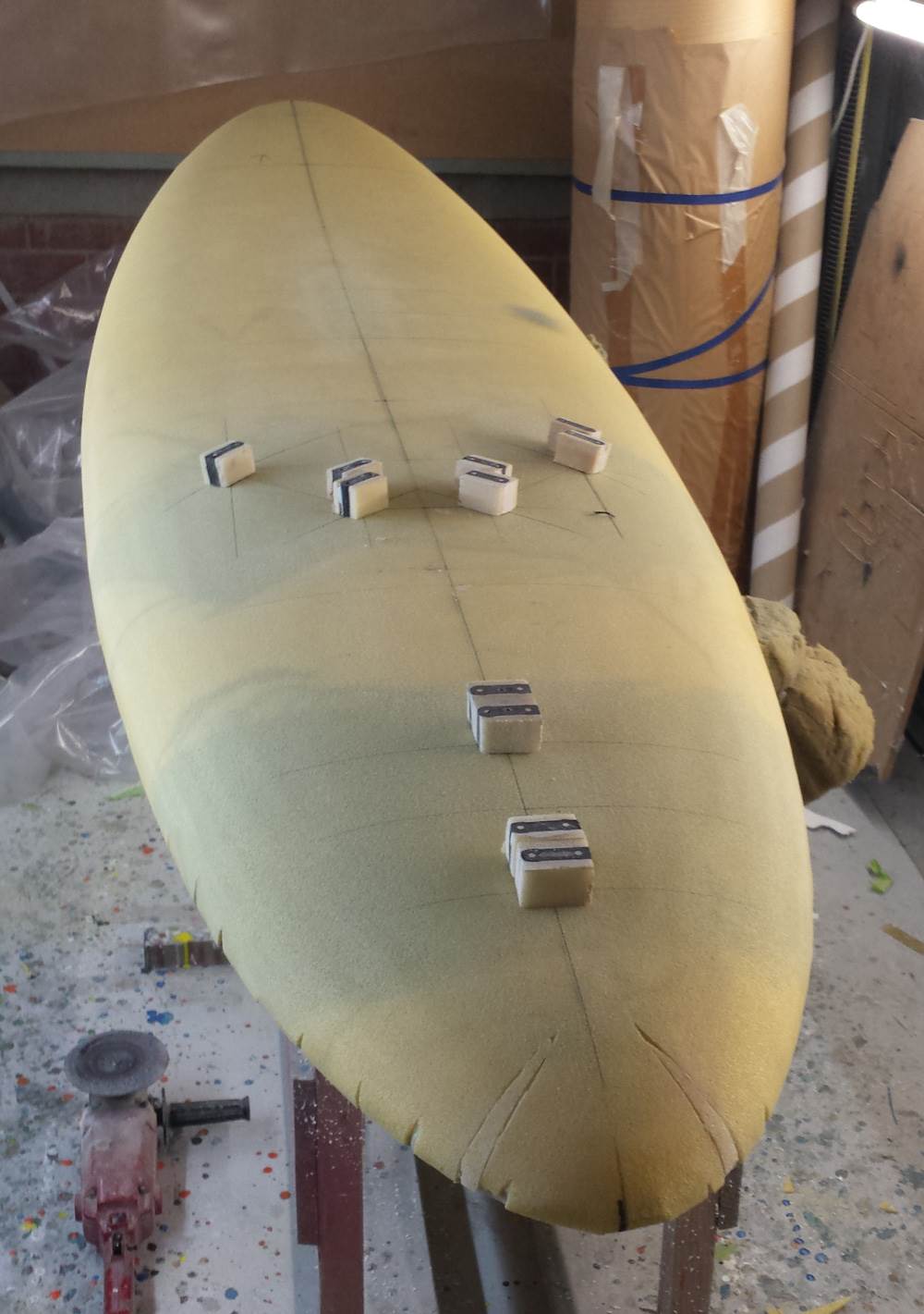 It's been an interesting few weeks. We brought some land down by the beach and then 2 days later told that we had to move out of our rental in Sydney. So moving to coast a year early! Today I finally had time to finish shaping the board and cut out the reinforcements all ready for putting the deck Hd foam on this weekend.