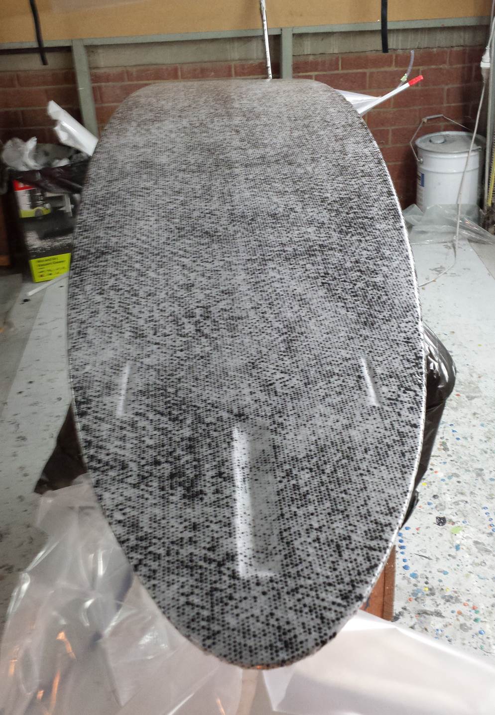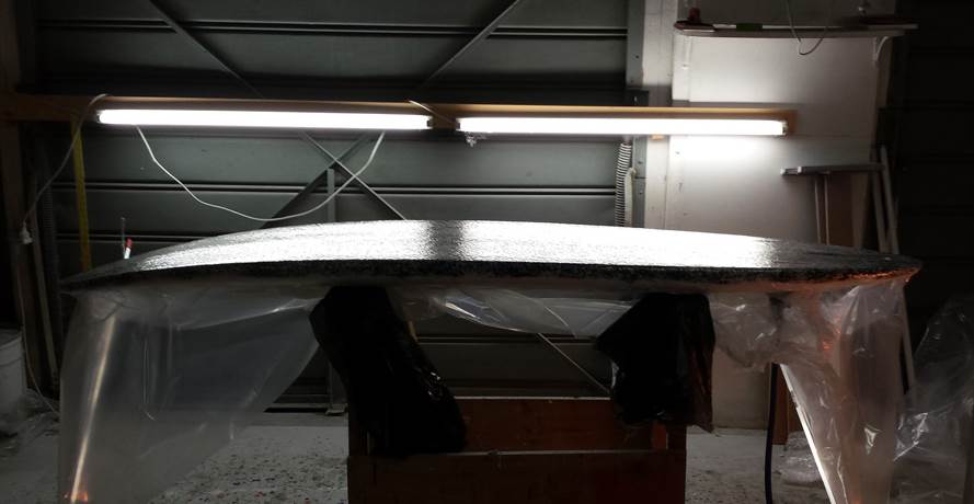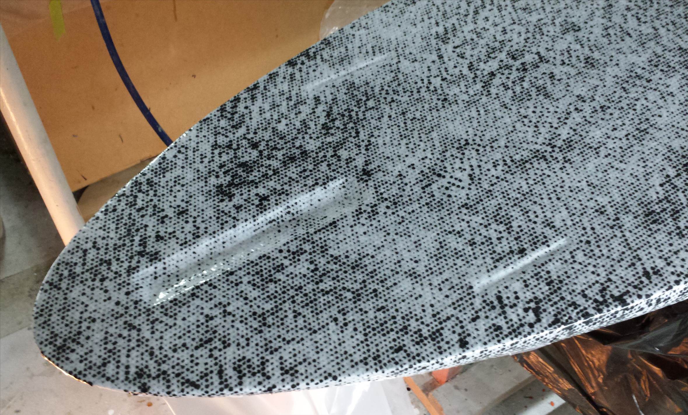 So Stuart, that is the effect with the black tinted resin and the Inegra after bagging?? looks freaky, cool freaky!!!. I guess you do another black tinted resin hot coat, sand , paint and sand???