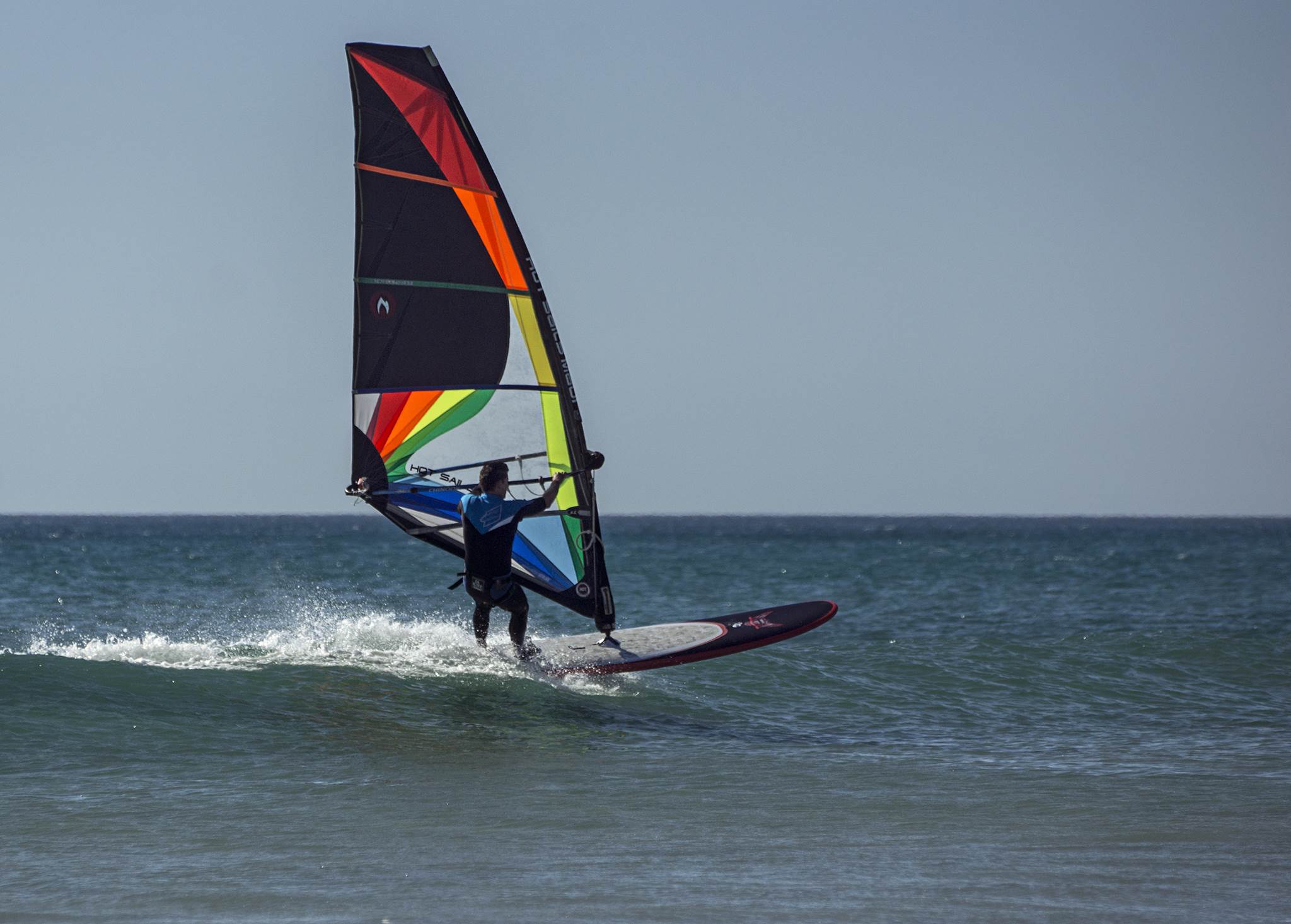 Thanks for posting pics! That's me with the multi-coloured sail. It was a nice relaxed way to end the weekend. Those waves were doing their best not to get ridden - tide a bit too full - but Russell and I hooked onto enough for a bit of fun.