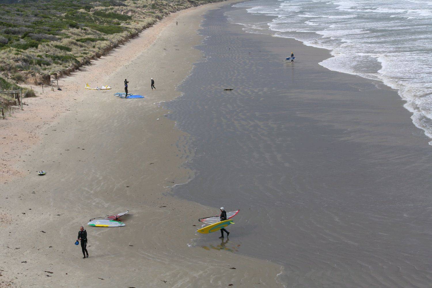 Great photos, looked like all were having a fantastic time. Up on the north coast we had plenty of wind but not so much swell. Nic and myself sailed Bell Buoy until Nic retired early with an injured neck. In the end it got too windy for my 4.5 so I called it a day after 3 hours of sailing. Unfortunately we both forgot to bring a camera.