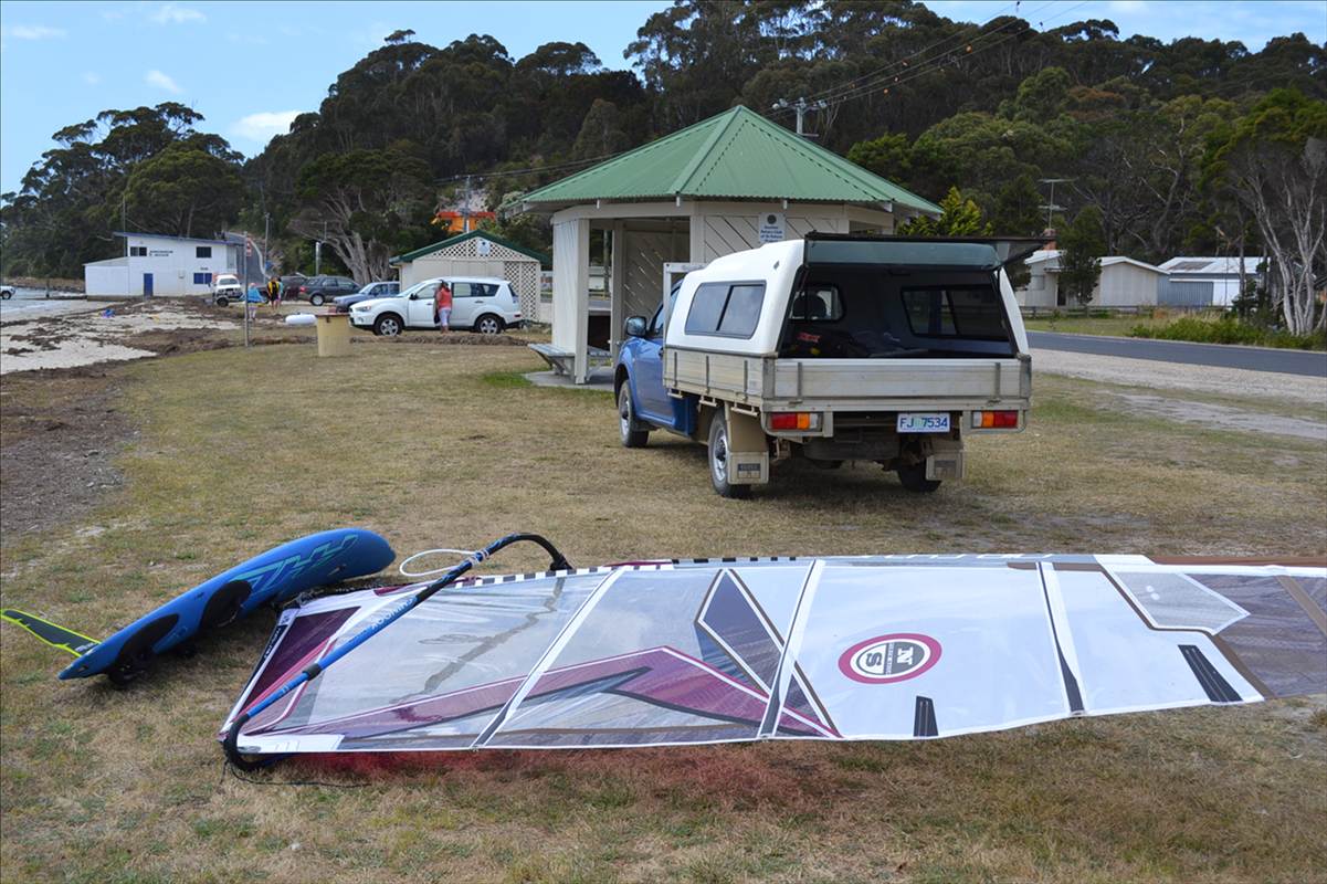 Please note the white building in background is known as 'scout hall' for those refering to the 'winsurfer spot guide'.