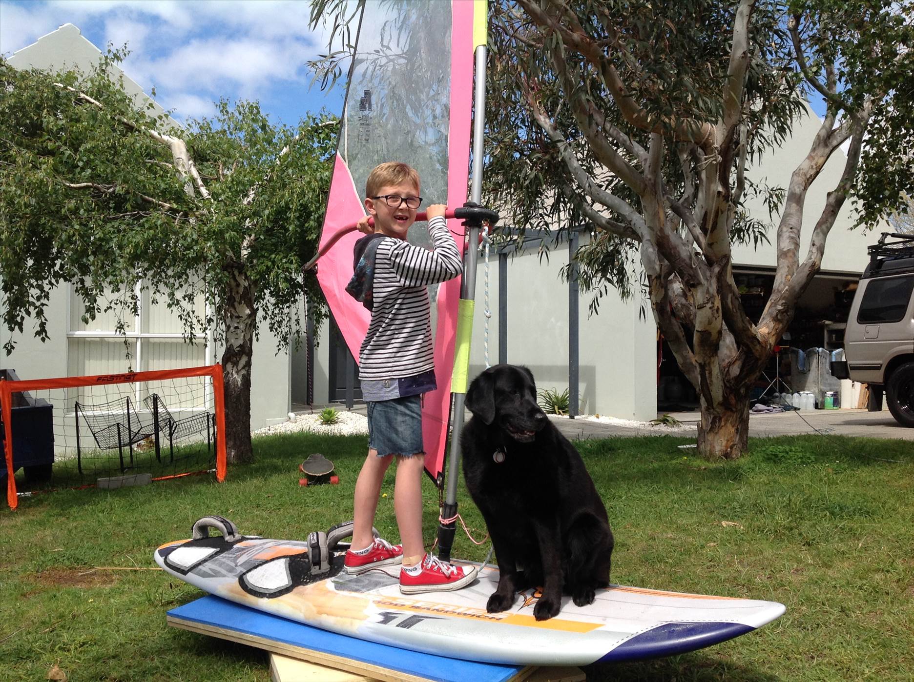 it is a dynamic simulator...a type of turntable. A board is strapped to it. The student can get the sensation of what happens when moving the centre of effort with the sail easily under close instruction.The device allows the student to gain an immediate understanding of the way a sailboard functions.