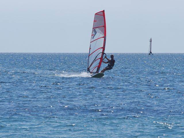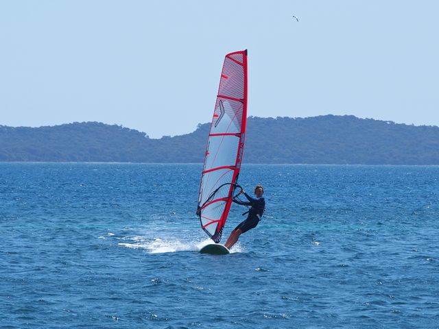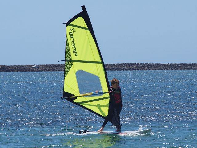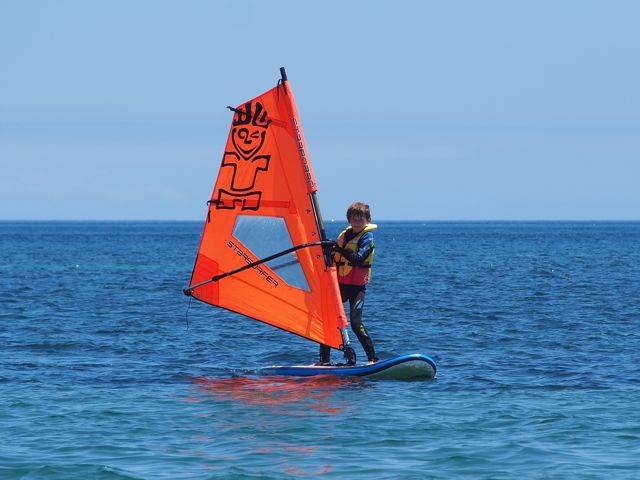 Sanden is on his new inflatable starboard sailboard, with his 2mtr, which has been fantastic.