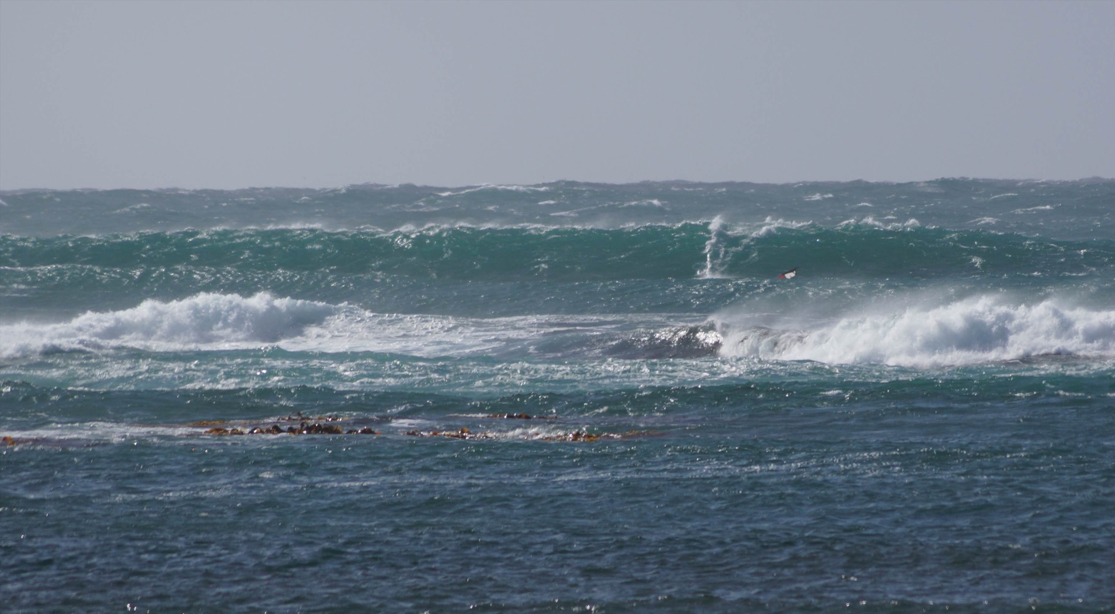 Getting out through the channel is a walk in the park, looks gnarly but you can see there's no beach break to contend with. Just walk over the rocks into the wind line, water start, dog out about 70m then you're off and planning.
