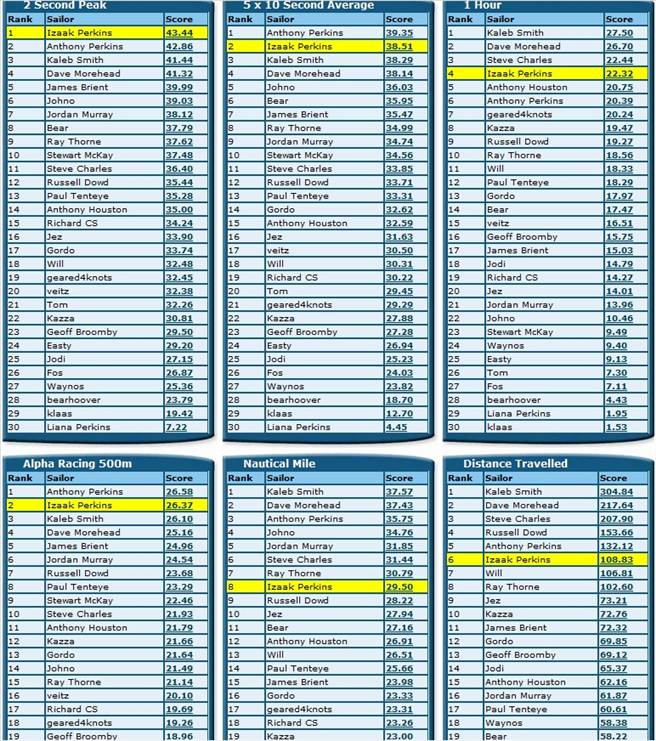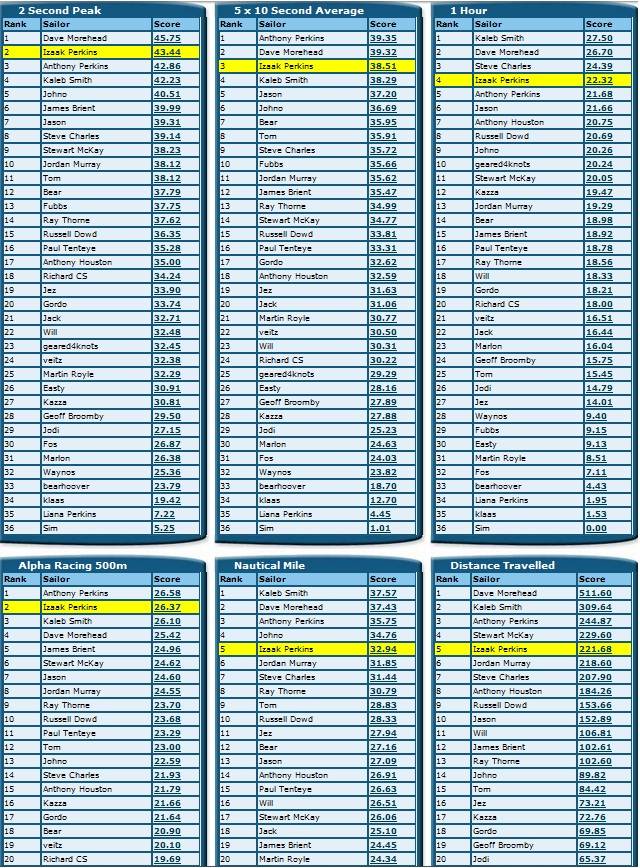 We have 30 sailors now in the Tassie GPS Challenge, with placings for this years event based on rankings as of 31st December 2011. With the windy season now upon us, good opportunity to bump up your individual performances and to try and sneak ahead of your peers ...