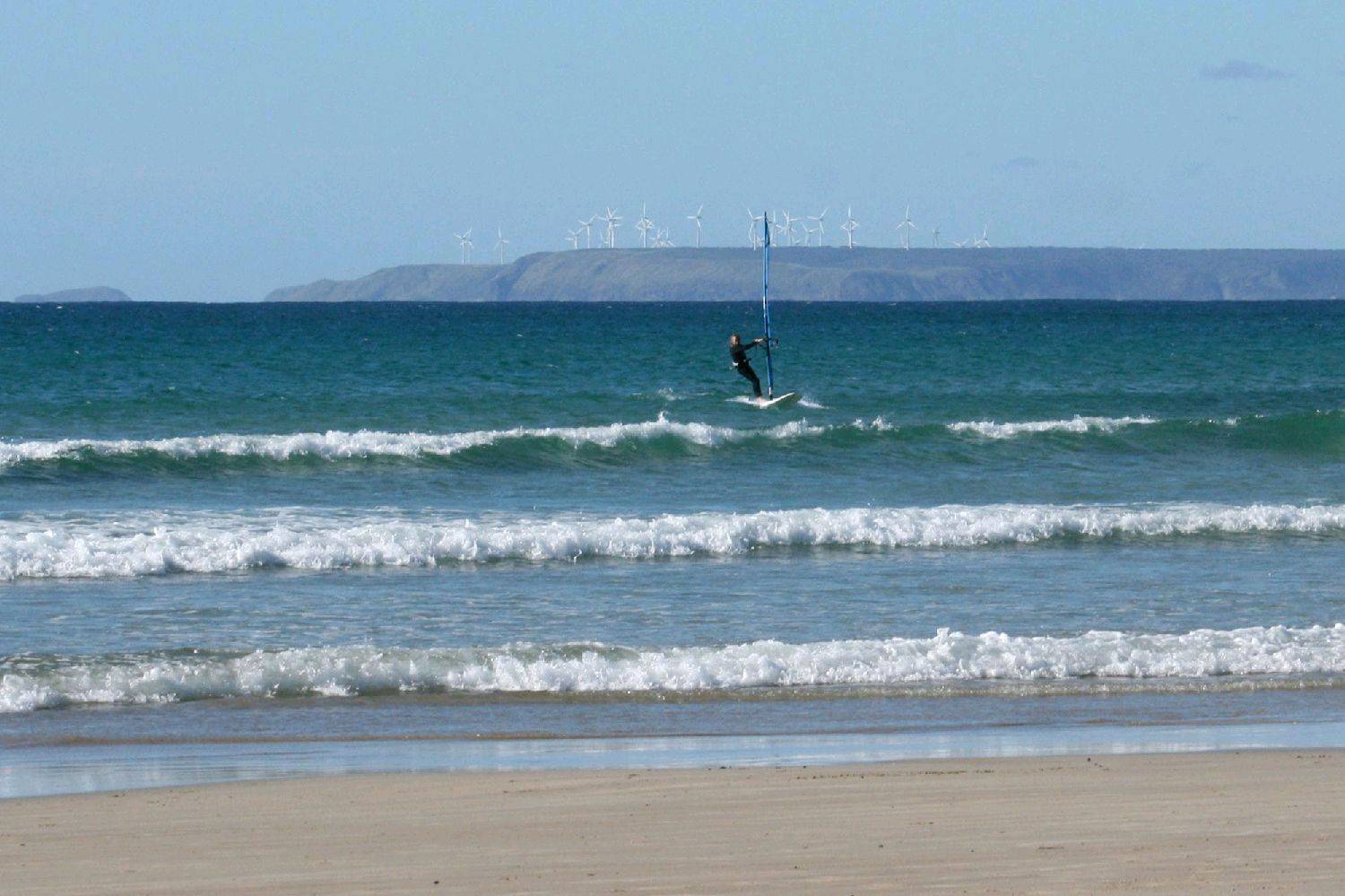 For those who only see radical pics of sailing on the west coast and keep away because it looks and sounds too daunting to go anywhere near, well more often than not the swell can can be small and will vary depending on where you sail. The waves at Greens are usually pretty small because the swell has to wrap around the point to get in. This is a great spot to start wave sailing in an absolutley mind blowing setting.