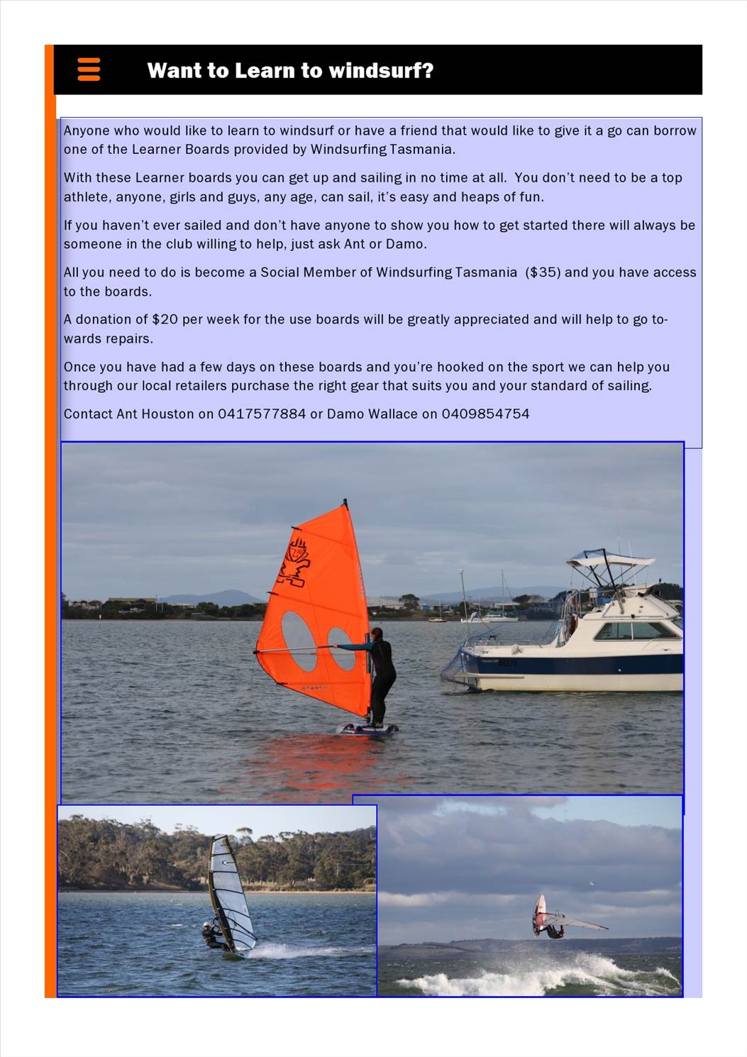 As discussed with Damien I have one learner board at home in Taroona for those on the western shore who want to borrow one without having to go to Cambridge ph 0408718847