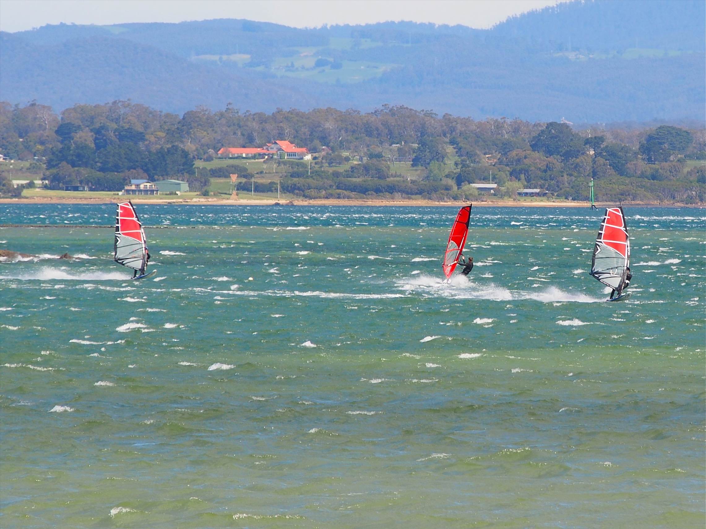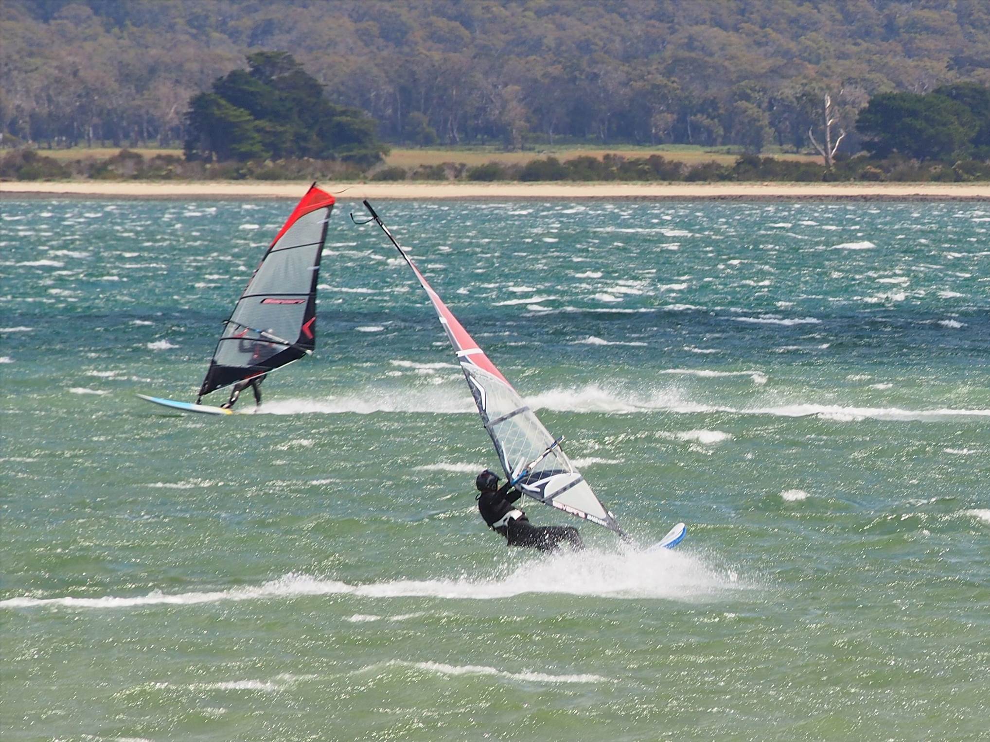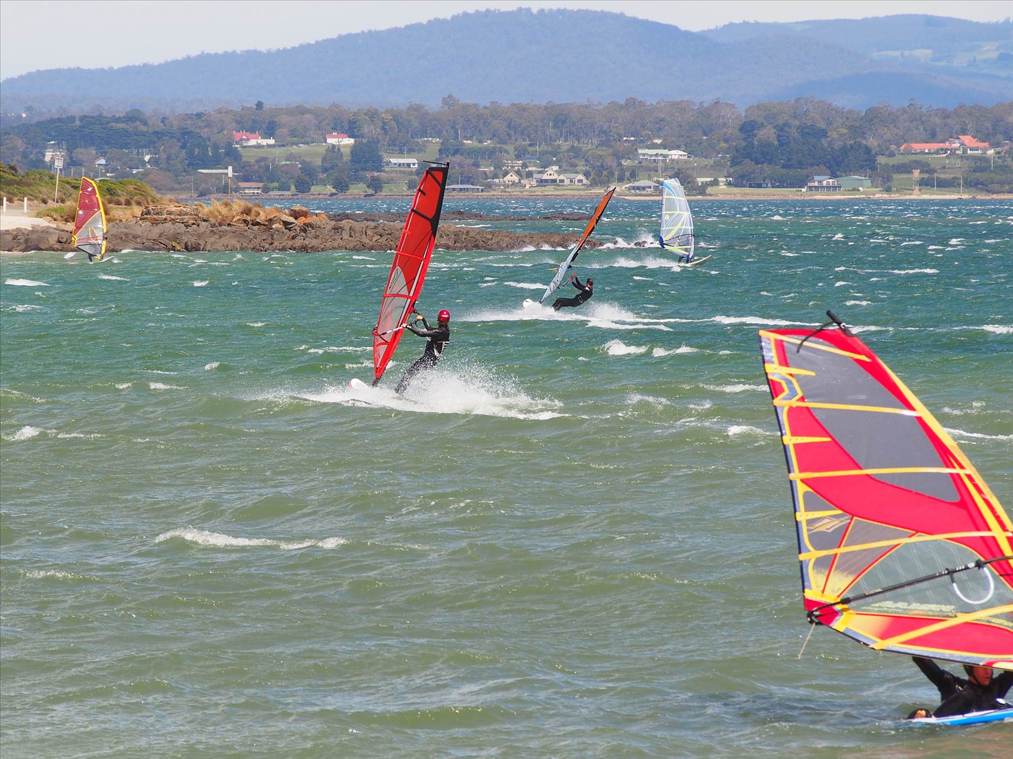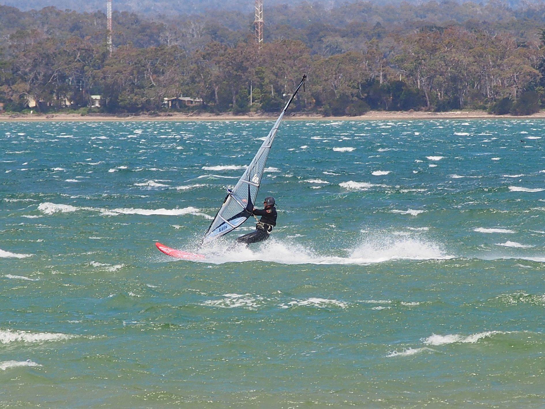 I think the head count was at least 12. It was very windy and gusty, with winds varying by 10 knots. 25 - 35 knot winds for most of the day, but winds hit a ridiculous 42 knots late in the afternoon when a few very keen sailors went to Bell Buoy. Sorry, no shots of this nuclear event as I was well done, like the most of us before then.