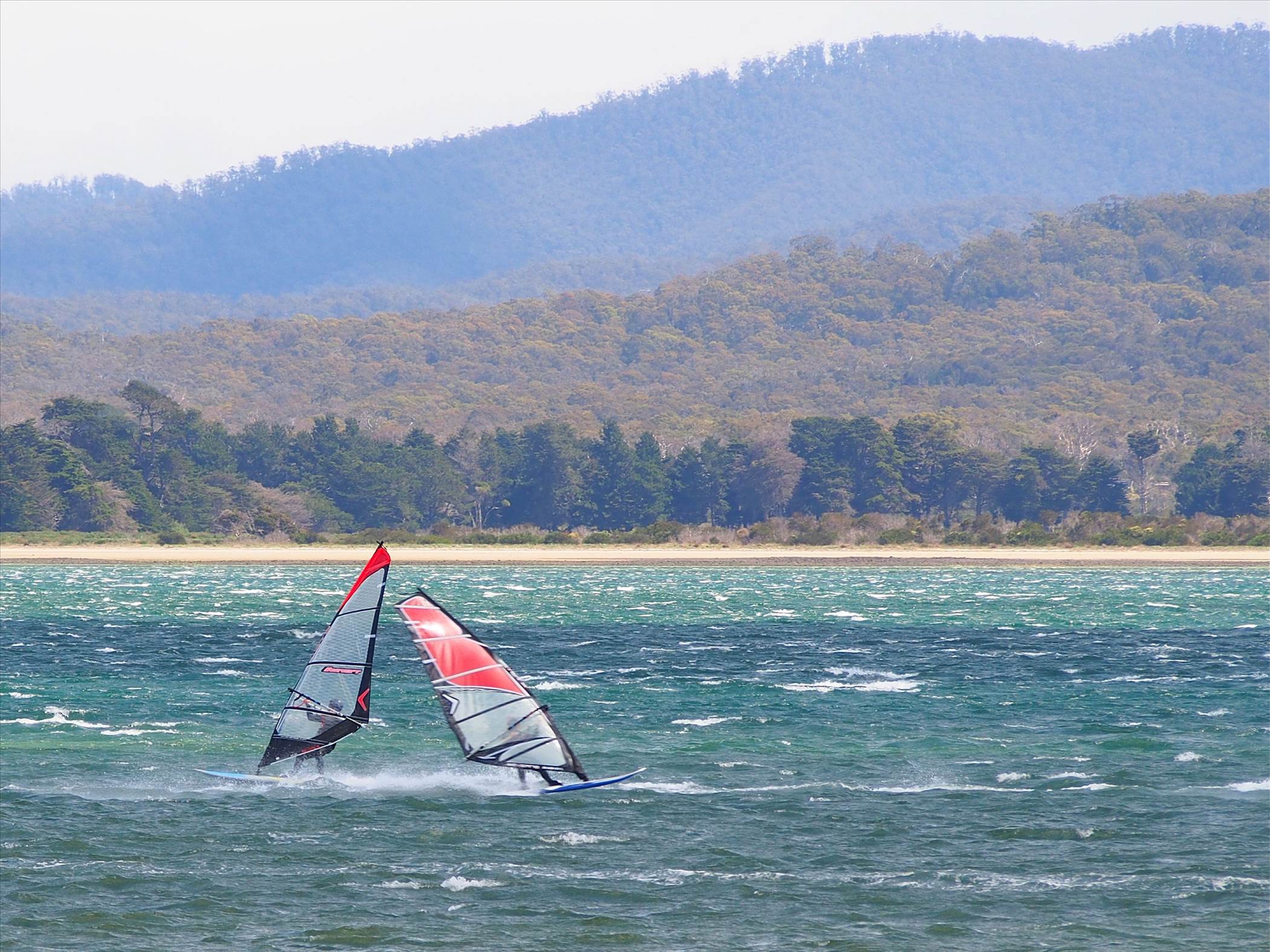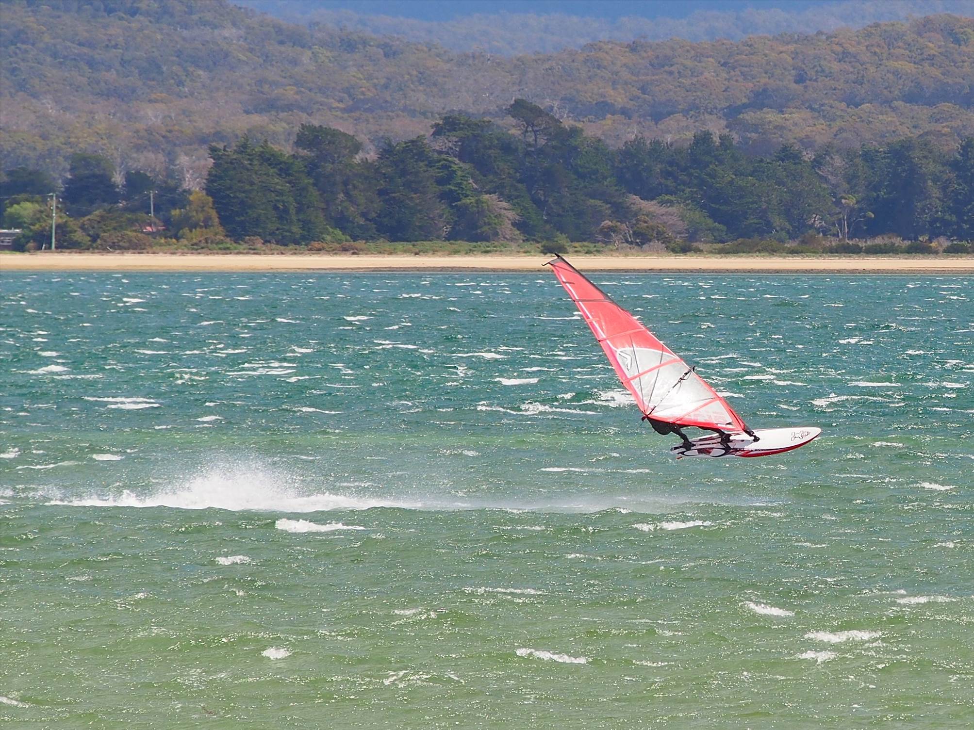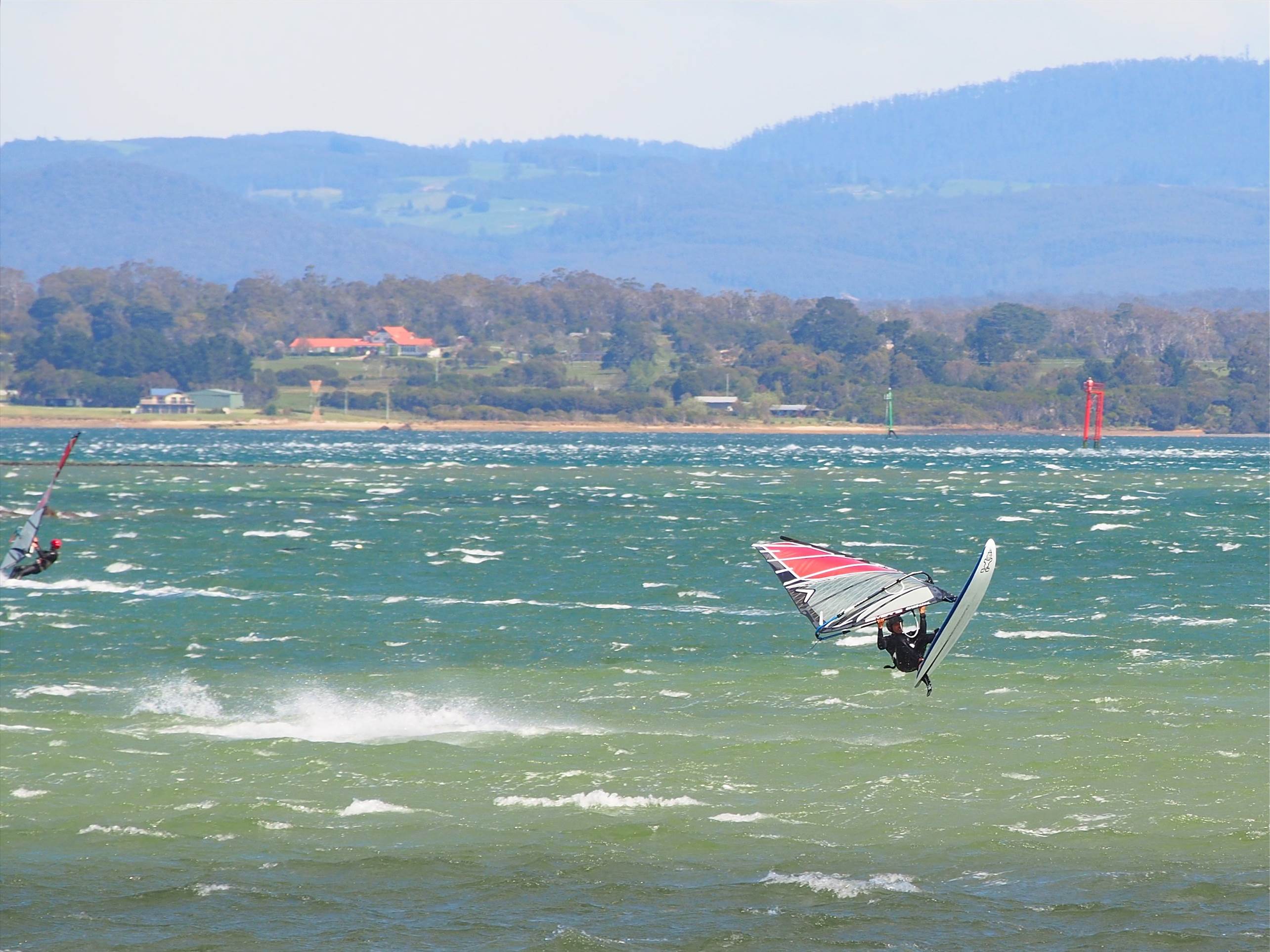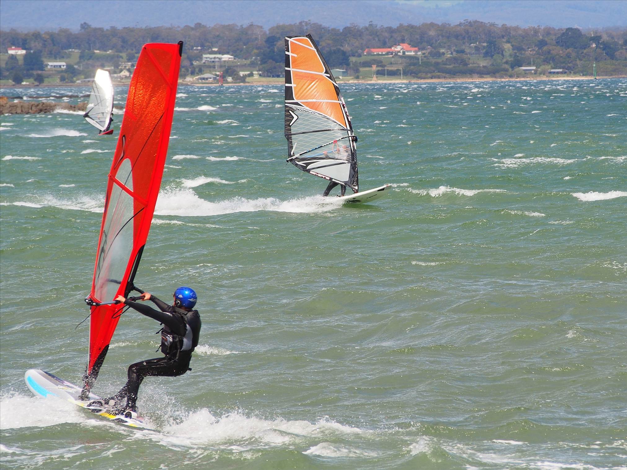 I think the head count was at least 12. It was very windy and gusty, with winds varying by 10 knots. 25 - 35 knot winds for most of the day, but winds hit a ridiculous 42 knots late in the afternoon when a few very keen sailors went to Bell Buoy. Sorry, no shots of this nuclear event as I was well done, like the most of us before then.