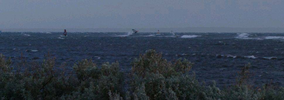 Once the wind settled back somewhat, some of us sailed some very good 6ft+ left-handers, that were coming through as a result of the new beach/reef that the council has built.