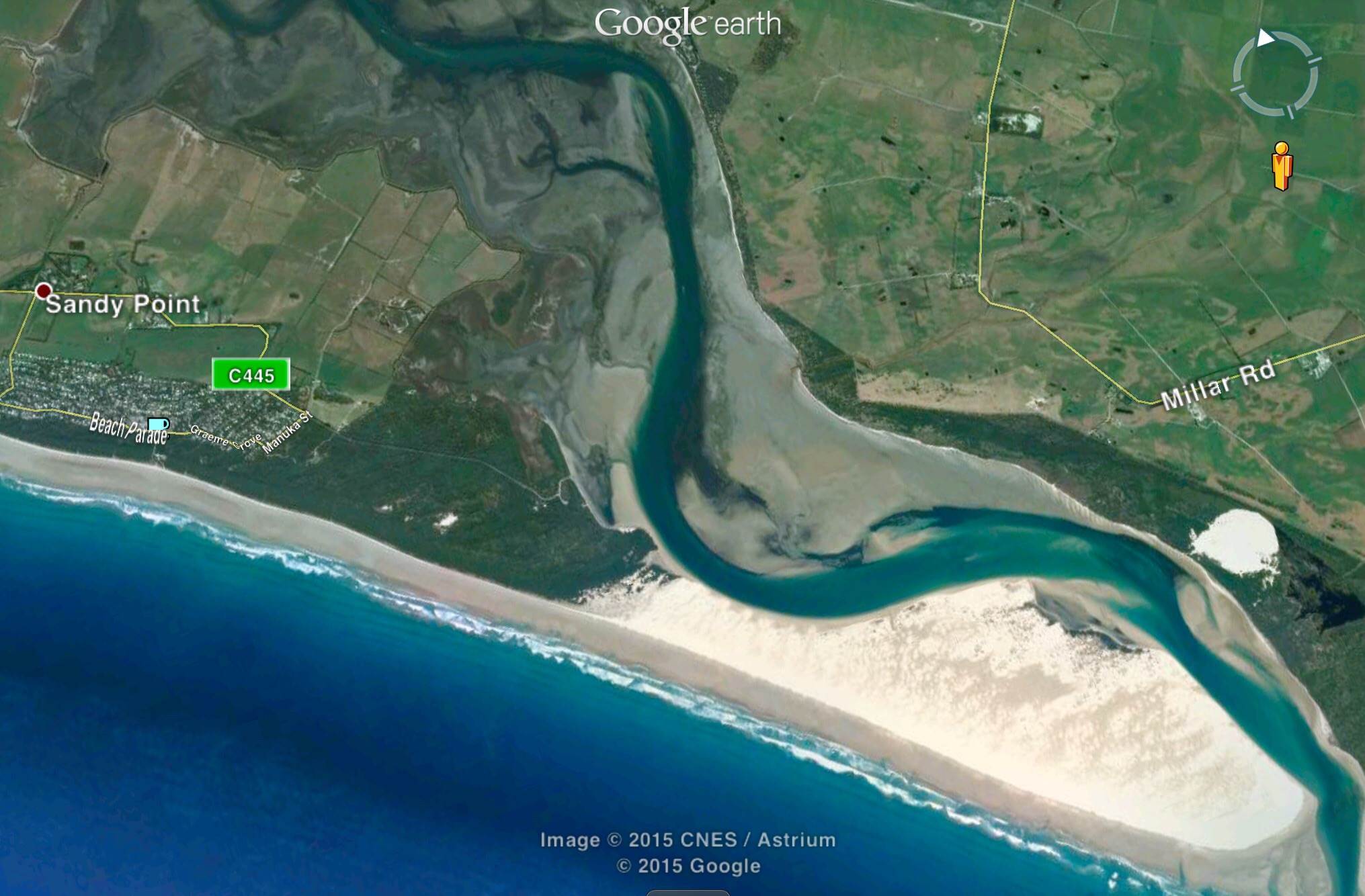 Inverloch, Andersons Inlet. Everywhere you can see is sailable, depending of wind direction and tides. Northerlies are gusty and challenging, but good surf can be had. Very popular and can get quite busy on the water when conditions are good, especially at low tide: boats, jet skis, kites, swimmers and the odd tractor tire full of kids. Heaps accomodation and good food to be had. That Kato fella broke 40knots here.![]()