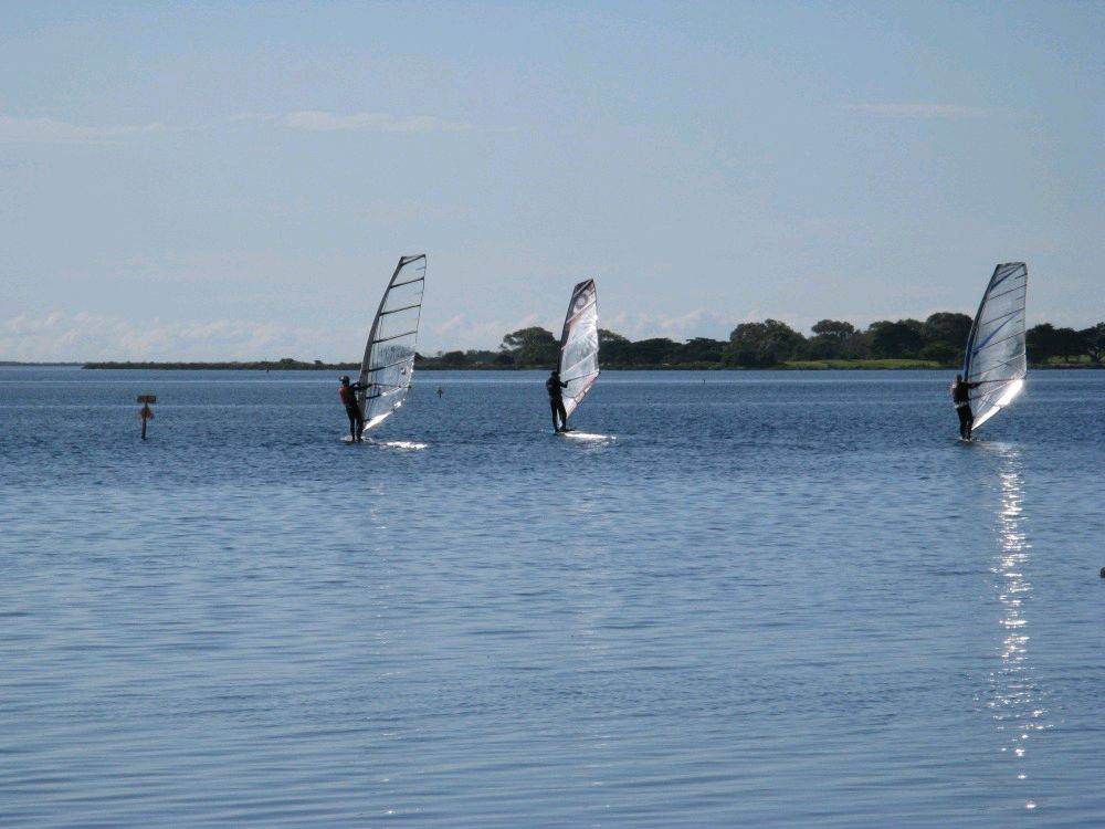The wind was humming early(20 kts) as we hit the water and posted some good speeds. Water was flat and the runs where long. Around 1pm Red spat the dummy and turned the wind dial down to dead calm when I was way out the back and he was heard muttering something about "no wind at the Inverloch Speed Weekend I 'll show you no wind" Everyone else came in under sail.