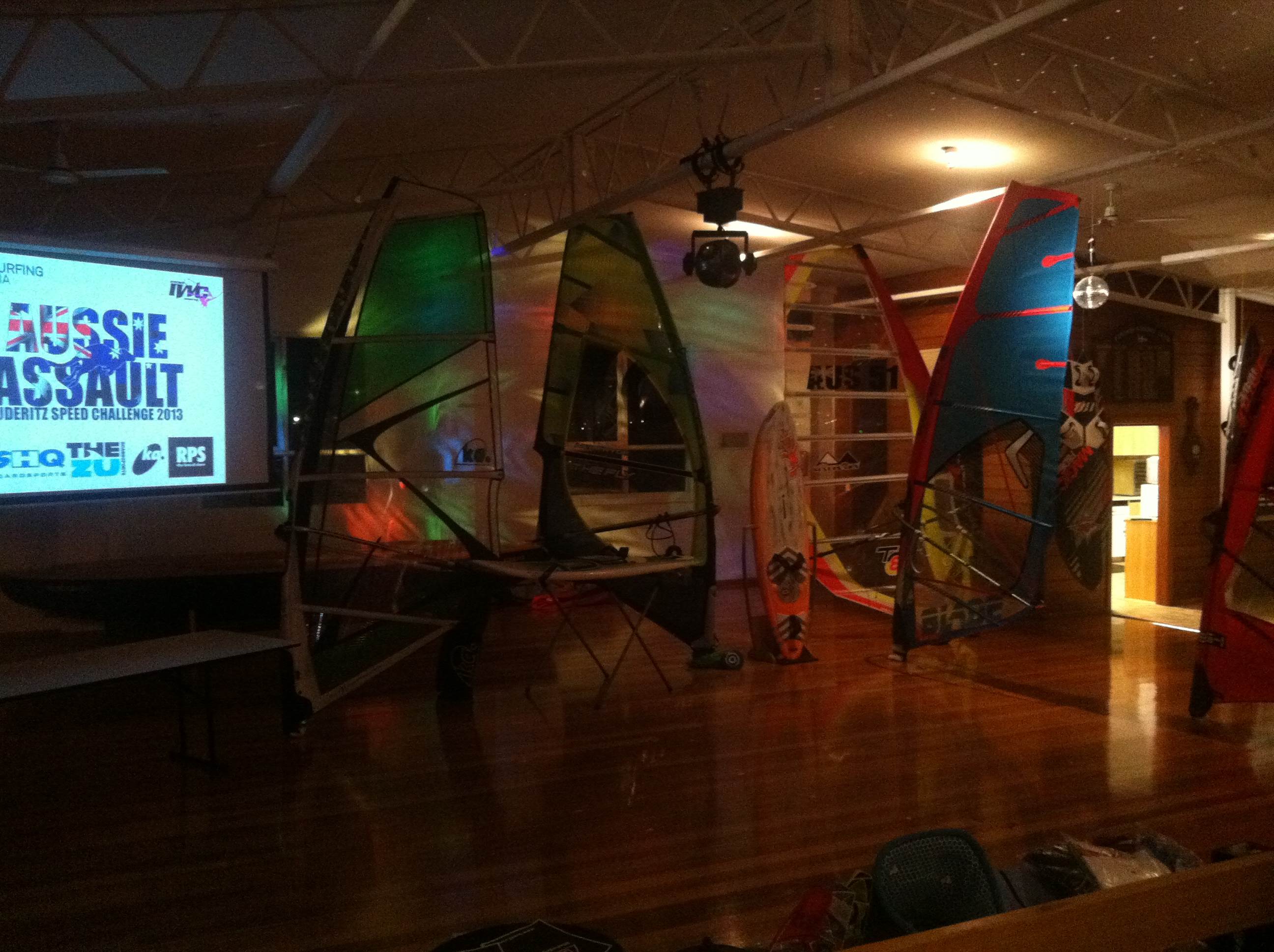 There will be a sausage sizzle, videos, Trivia, random prizes and the first arrivals of the 2014 gear on display from the shops, some speed sailing gear on show, and finally some pizza to go with the lights and tunes in the evening.
