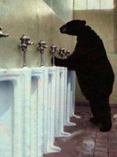 "I've included a picture of a bear using a urinal, this is how I normally use the toilet, notice that the animal is not wearing a wetsuit. Although I am not a bear, I, like a bear, do not piss in wetsuits."